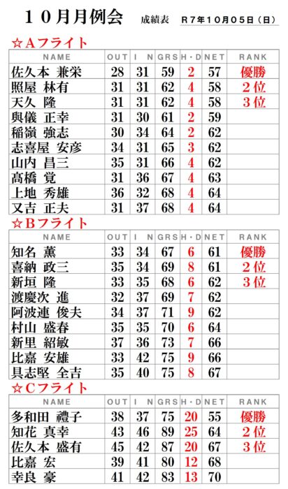 さて、今月の月例会の結果は・・・・