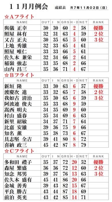さて、今月の月例会の結果は・・・・