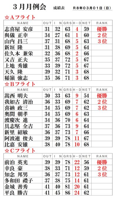 さて、今月の月例会の結果は・・・・